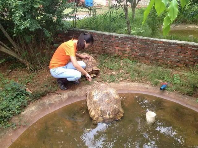 研究生茅玲燕检查豹龟健康状况