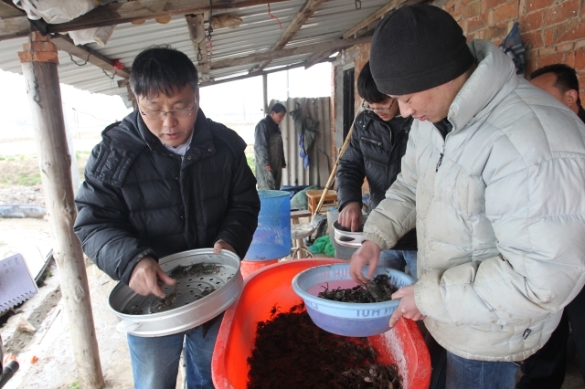 为确保各项具体工作顺利开展,公司与苗栗县政府、苗栗县大闸蟹发展协会开展产学研合作,形成了围绕大闸蟹养殖的高效率运作的“2+2”产学研模式:大陆基地组依托公司崇明基地,着重向台湾方面提供种源清晰、质量优秀、规格适中的蟹种;台湾技术研发组以王春副教授为主,长期驻台,为苗栗县养殖示范户量身定做大闸蟹养殖技术方案;苗栗县政府成立协作组,通过“搭台”、“铺路”、“辅导”、“跟进”、“巡考”等形式,以品尝大闸蟹助推其休闲旅游业和精致农业创新;苗栗县大闸蟹发展协会组织发展会员,配合县政府、技术研发组做好科技服务,统一市场品牌,开拓市场需求。