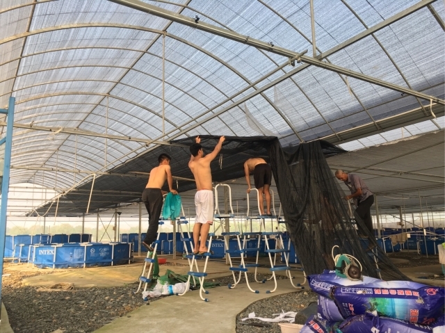 清理池塘淤泥、平整场地、架设围栏、搭建管网、组建循环水养殖系统,几个学习水产的年轻人在瀛东村化身多面手,水电工、泥瓦匠、挑担手,为了节约资金,除了必要的工人外,团队没有请更多的工人,几人主动承担起了基地改造的工作。老员工下地干重活的“新鲜场景”也引来了附近村民的围观,“从来没见过老员工下地干这么重的活。”