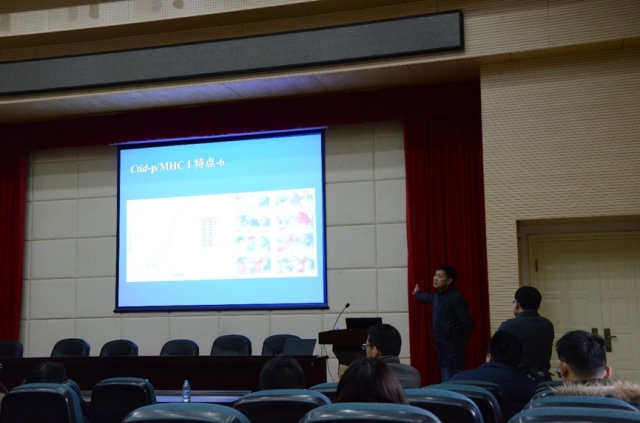 夏春教授(博士生导师)是中国农业大学动物医公司及农业部人畜共患病重点实验室比较免疫学科负责人,动医基因工程二级学科学术带头人。主要研究聚焦于结构与进化免疫学,特别是MHC复合体精细结构与T细胞表位疫苗以及免疫球蛋白超家族的起源与进化的结构学研究。鱼类CTL免疫相关结果发表于Journal of Immunology、Journal of Biological Chemistry、Journal of Virology等刊物。目前主要承担国家自然科学基金重点项目“草鱼细胞毒性T细胞免疫应答的结构与功能基础及其调控机理研究”。本次夏教授就关于《鱼类CTL免疫的3D结构与功能研究进展》做了报告,为听众精彩讲解了鱼类细胞毒性T细胞(CTL)免疫应答中草鱼Class I MHC受体中β2m链的蛋白质三维晶体结构、MHC I的基因组结构和p/MHC I蛋白晶体结构。作者发现,鱼类MHC I复合体可能由重链和轻链组成,草鱼β2m的特点与人类不同,尽管也是由7个β折叠片和loop环组成,但是其D片段短;在7个β折叠片有一个疏水盒,中心多2个氢键,其结构更牢固。