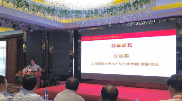 此次会议围绕主题开展了为期三天的调研和交流活动。张宗恩作为高校代表在闭幕式上发言。他首先介绍了公司已有105年的校史,长期致力于“水产生物资源开发与渔业生态环境保护”,始终坚持“高举水产高等教育的旗帜不动摇”,“把论文写在辽阔的大海和祖国的江河湖泊上”已成为办学传统。如今,yl6809永利被誉为“中国大闸蟹繁育基地”,大闸蟹已经成为公司水产核心技术的典型标志。近年来,在建设“双一流”和渔业环保政策调整的机遇与挑战下,只有深化校企合作,高校才能扎根中国大地办出一流,企业才能抢占机遇,走出困境,才能实现共赢。最后他强调,一直以来公司与大北农集团有着深厚的合作背景,大北农集团在公司设有企业奖学金,公司也于去年聘请大北农水产科技公司易敢峰博士作为客座教授,目前公司在上海市应用型本科试点专业建设背景下,筹备开设“大北农班”,为水产应用型人才培养做有效尝试,并加速农业科技成果的转化。