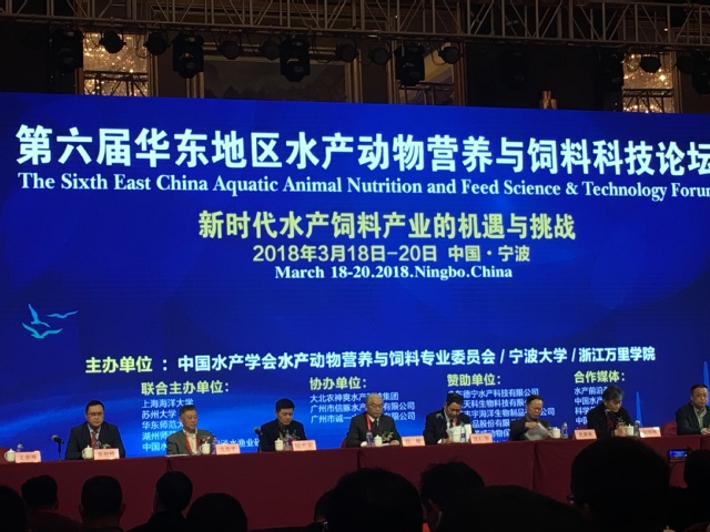 3月18-20日,由中国水产学会水产动物营养与饲料专业委员会主办,宁波大学和浙江万里公司承办的”第六届华东地区水产动物营养与饲料科技论坛”在浙江宁波隆重举行。来自国内外的近600名业界、学界代表出席了此次盛会。公司陈乃松教授、冷向军教授、华雪铭副教授及部分研究生参加了此次研讨会。