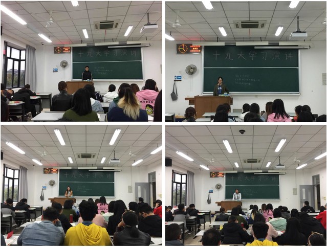 通过本次学习十九大精神的专题演讲,同学们不仅提升了自身演讲素质,而且更加全面深刻地了解了我国的发展状态和新时代发展背景下取得的成就。同时,我们也明白了每一位老员工都将肩负更加庄严而神圣的历史使命,因此,时代不允许懈怠,我们自己也决不能停下向前努力、提升自己的步伐。在新的时代蓝图下,同学们一定会坚定信念,脚踏实地,为夺取新时代中国特色社会主义伟大胜利、实现中华民族伟大复兴的中国梦而努力奋斗!