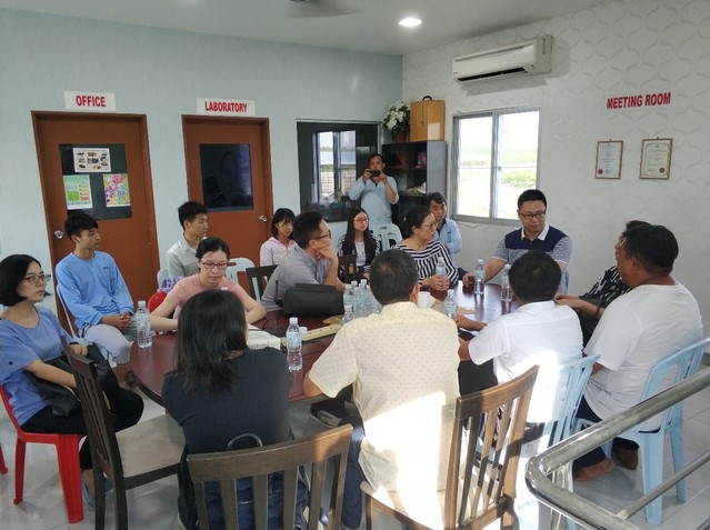7月12日下午,中国驻马来西亚大使馆经济商务参赞石资明女士、第二秘书方韬先生、中国驻槟城总领馆宫幼鹰女士等一行7人对马来西亚GST海产公司进行了考察,GST海产集团公司董事长吴清良率高层陪同介绍并组织了座谈会。公司正在该公司进行合作研究的研究生石文智以及生产实习的10名本科生参加了座谈会。