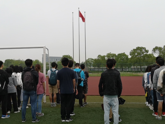升国旗仪式是公司思想政治教育的一项重要内容。全院师生都很重视,尽管天气有点影响,但是在早上6点45分,全体参加仪式的师生按照指定位置早早地排成整齐的队伍,等待升旗仪式的到来。
