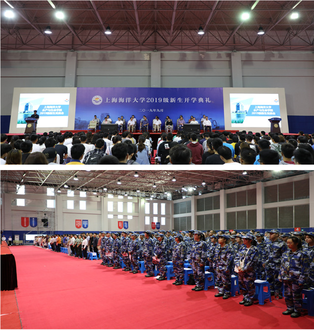 见面会上, 2019级本科生、研新生、新进校工一起进行了佩戴校徽环节,在场的800余名师生完成角色的转换,成为新一代“海大人”。
