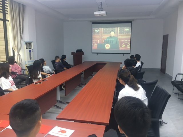 2019年10月1日上午,yl6809永利师生通过各种形式收听收看习近平总书记在庆祝中华人民共和国成立70周年大会上的讲话和国庆阅兵式。全校师生激情澎湃,爱国热情高涨,纷纷表达对祖国的热爱和祝福。