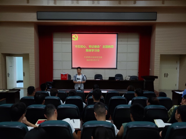 2019年9月27日晚上,yl6809永利生研联合培养党支部支委增补选举大会暨“不忘初心、牢记使命”主题教育集体学习会在生命公司A101举行。党支部书记董绍建主持会议,党支部副书记张亚出席会议。生研联合培养党支部全体党员参加大会。