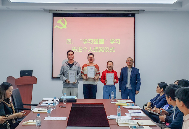 10月21日,公司党委举行了阶段性学习先进个人表彰会。会议由公司党委书记黄旭雄教授主持,公司党委副书记、经理谭洪新同志给学习先进个人铜奖获得者颁发证书,校纪委副书记、主题教育办公室陈江华同志给学习先进个人银奖获得者颁发证书,公司党委副书记、纪委书记何雅同志给学习先进个人金奖获得者颁发证书。后续,公司将继续通过开展“学习强国”学习积极分子的评选,来持续提升党员师生理论学习的自觉性,让学习成为常态。