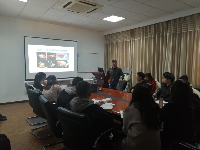 任建峰从附肢是脊椎动物重要的运动器官,在由水生到陆生的进化过程中形态发生变化讲起,附肢经历了由奇鳍到偶鳍,再向四肢的进化过程。从骨骼发育和进化起源来看,四足动物的四肢与鱼类的偶鳍是同源器官。目前,以小鼠、鸡和斑马鱼等为模型,对成对附肢的形成和发育做了深入研究,其演化、形成和发育调控模式趋于明晰。与四足动物不同,鱼类除偶鳍外还拥有奇鳍,奇鳍是偶鳍进化上的先驱,在进化上具有重要意义,但是其发育机制知之甚少。本讲座主要围绕任建峰获得的一个无背鳍青鳉突变体鱼开展研究,获得受累基因的过程,以及该基因在观赏鱼背鳍遗传改造中的应用潜力。
