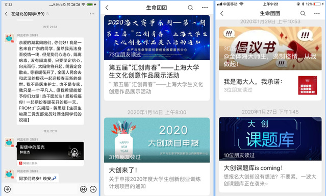 生研生物第二党支部书记柯蓝老师开展了“党员对你说”活动,每日对在湖北的员工送去关怀和鼓励,迄今已坚持十四天。团委书记翟斯凡老师利用网络平台,收集、报道“奋战疫情防控、生命公司在行动”志愿者系列报道20余次;开展停课不停学,通过线上学习打卡、读书分享、疫情防控知识宣传等多种线上云学习活动;疫情期间开展线上主题团日活动30余场,并形成简报;开展线上青年大学习,参与人数近1800人;统筹开展科科创赛事挖掘、申报和评审工作。做到真正意义上的在线参与老员工活动。