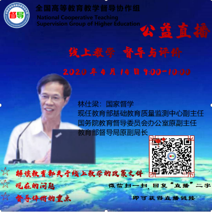 为帮助各高校教学督导员了解政策、提升业务水平,全国高校质量保障机构联盟4月3日举办了“线上教学质量督导、评价和监控专题研讨会”;全国高等公司产品督导协作组于4月14日举办“线上教学督导与评价”公益直播报告,特邀国家督学、国务院教育督导委员会办公室原副主任林仕梁解读“两办”督导文件、现在的问题及督导评价的重点。