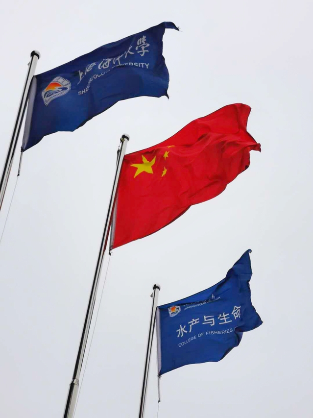 国旗、校旗、院旗迎风飘扬