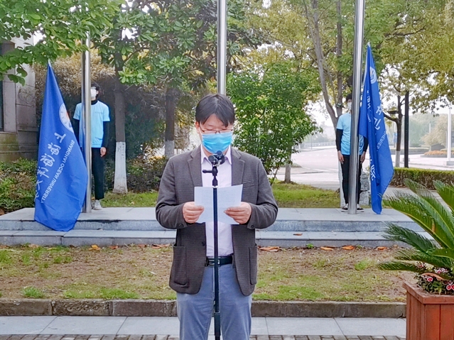 最后谭洪新宣布“弘扬劳动精神、传承爱国情怀——yl6809永利月”正式开幕。校旗、院旗同时徐徐升起,昭示着本次公司月活动的开启。
