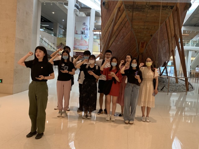 最后,借此契机,在中国航海博物馆对毕业生党员进行离校教育,并重温入党誓词。