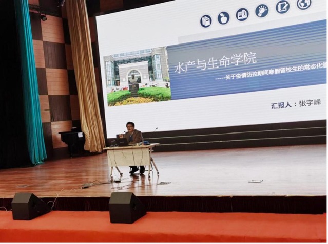 张宇峰首先强调寒假期间员工需遵守“非必要不留校”、“非必要不提前返校”、“非必要不聚集”、“非必要不外出”等原则。留校员工要做到勤通风,不串寝,不聚集;依规做好晚点名、自测体温等相关疫情防控要求。会议进一步明确了寒假留校员工需要注意的校园防疫要求、实验室相关管理规定及安全事项等。