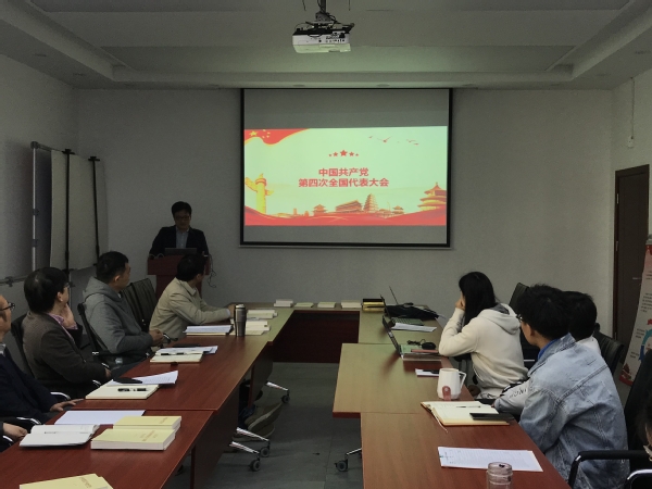 党委副书记张宇峰在会上做了党史教育学习报告“党的历次代表大会简史”,细数了从党的一大到十九大的召开情况及重要内容,从党的发展历程上与大家一起重温了党的历届大会召开的重要意义。