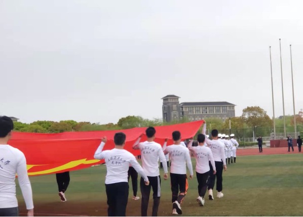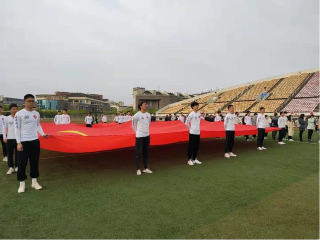 活动第二项是升中华人民共和国国旗,奏中华人民共和国国歌。当国歌响起的时候,全体人员对国旗行注目礼,五星红旗冉冉升起,迎风飘扬,在场的每一位师生都怀着激动的心情唱完国歌。
