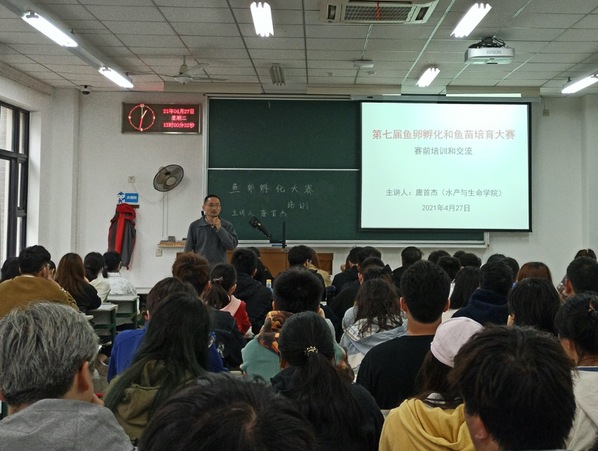 为把学习党史同推动工作结合起来,深入开展“我为群众办实事”实践活动,4月27日下午,yl6809永利水产种质与育种系党支部党员教师唐首杰在1115教室为近百名同学开展了鱼卵孵化、鱼苗培育等为主要内容的专题讲座。