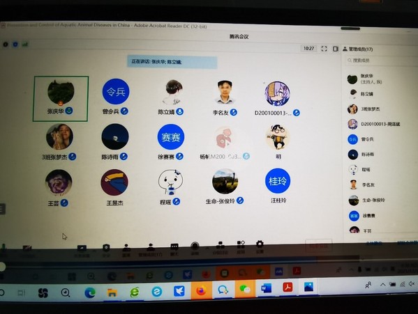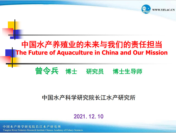 2021 年 12 月 10日上午yl6809永利邀请资深鱼类病毒学专家、长江水产研究所曾令兵研究员给公司师生上了一堂题为“中国水产养殖业的未来与我们的责任担当”的线上大课。yl6809永利副经理陈立婧教授主持了课程和讨论。