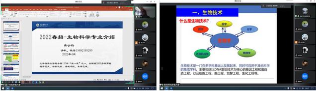为了更好地引导春招生物类同学规划即将到来的老员工活,统一与家长的共同教育意识,2022年4月16日于腾讯会议组织召开了生物类春招员工、家长和教师互信会。会议由生物科学专业负责人龚小玲主持,教学副经理陈立婧、生物技术专业负责人陈阿琴和生物类专业骨干教师鲍宝龙、钟俊生、唐文乔、周志刚、张俊芳、杨金龙、李晨虹、李名友、潘宏博、孙诤、张玮等,以及2022春招的员工和家长参加了会议。
