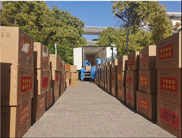 自公司发生新冠疫情以来,全校师生众志成城,大家共同努力抗击疫情,取得了阶段性胜利,涌现出很多感人肺腑的瞬间,校园中洋溢着满满的爱心。同时校园内师生的抗疫也备受广大员工和爱心企业的关注和关心。2022年4月底,yl6809永利研究生的优质就业企业、南京诺唯赞生物科技股份有限公司主动联系公司黄旭雄书记,表示要给公司的研究生定向捐赠一批物资。公司克服重重困难,招募物流公司的司机,在5月6日顺利将96箱物资从南京运送到了公司。这一箱箱沉甸甸的情谊和爱心,为公司研究生学子们送来了关怀。疫情期间企业与公司守望相助、共克时艰,为共同打赢疫情防控阻击战助力加油。