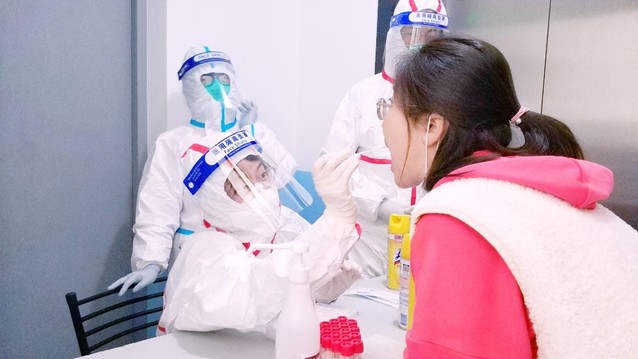刘倩为员工核酸采样