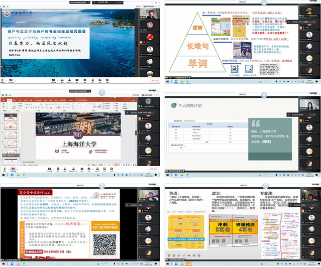 2022年5月26日,yl6809永利举办线上考研专项辅导--水产类专业考研咨询分享会,会议历时3小时,学长分享干货满满,学弟学妹收获颇丰。公司领导非常重视这次活动,党委书记黄旭雄、经理谭洪新、副经理陈再忠、副经理陈立婧和党委副书记张宇峰全部出席,会议在线参加人数达到了285人。会议分别邀请了在今年保研和考研中表现突出的6位同学和1位成功就读浙江大学一年级的研究生做经验分享。会议由水产养殖专业负责人汪桂玲教授主持,水生动物医学专业负责人宋增福副教授、水族科学与技术专业负责人高建忠副教授和水产养殖专业营养饲料方向专业负责人华雪铭教授对分享的同学做引荐介绍。会议开始谭洪新、黄旭雄、陈再忠分别就近年的考研形势及现状、为什么要考研及考研选择、公司的升学体系及专业特点等做了详细的介绍。
