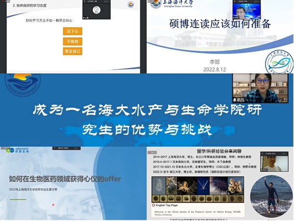 12日上午,生物系的多个科研团队负责人介绍了各自课题组的研究方向、学术成果、实验室氛围、毕业生去向,为营员们将来更加精准报考心仪的导师奠定了基础。下午的师生交流环节,翟思凡老师带来了《来上海海大生命公司做一名研究生的优势与挑战》的生动报告,焦荷、李郅、王雯、姚晓华、侯世挺五位优秀研究生代表,也从新生生活适应、如何准备硕博连读、读博感悟、就业、出国留学等方面,全方位地分享了他们的成功经验。
