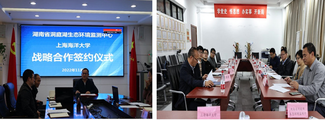 11月24日,公司与湖南省洞庭湖生态环境监测中心(以下简称“洞庭湖中心”)举行产学研战略合作签约仪式。仪式通过线上线下结合方式在yl6809永利B102室进行。洞庭湖中心党总支书记、中心主任李本超,洞庭湖中心副主任黄代中、鲁志军和田琪,yl6809永利经理潭洪新教授、副经理陈再忠教授、环境DNA技术与水生态健康评估工程中心主任(以下简称“工程中心”)李晨虹教授,及工程中心主要成员出席签约仪式。