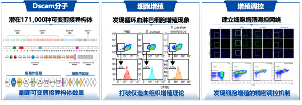 本课题组—无脊椎动物细胞免疫实验室(Invertebrate Cellular Immunology Lab,ICIL)聚焦无脊椎动物免疫记忆(免疫致敏)的分子机制,以经济养殖甲壳动物—中华绒螯蟹及模式生物—黑腹果蝇等物种为研究对象,揭示了唐氏综合征细胞黏附分子(Dscam)万种可变剪接异构体的特异性免疫功能及作用机制,阐释了血淋巴细胞的亚群分布特征及增殖调控机制,建立了“特异性免疫分子及增殖血淋巴细胞协同驱动无脊椎动物免疫记忆”的理论框架。