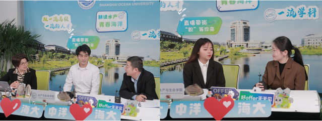 在中洋集团、正大集团招聘负责人分别介绍企业概况和用人需求后,高晓波、黄旭雄纷纷上阵直播带“人”、逐一介绍17名本、研毕业员工优势,“我们小龚同学不仅水产专业扎实,还在部队锻炼过一年,综合素质高”;“我们这位研究生因为长期扎根一线水产基地,所以只通过线上面试的方式交流。刚刚他展示了自己在基地的科研生活,看得出我们的员工真正的做到了下得了塘、搞得了科研,且学术成果丰硕”。推介后,企业负责人与毕业生进行现场互动。