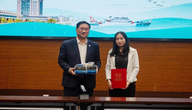 最后,伍汉霖教授家属向公司档案馆捐赠了重要的文献资料,吴建农与伍汉霖教授女儿伍晓萍合影留念。