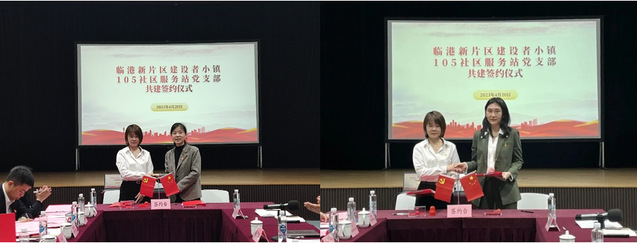 | 两员工党支部与临港新片区建设者小镇105社区服务站党支部举行结对共建签约仪式 |