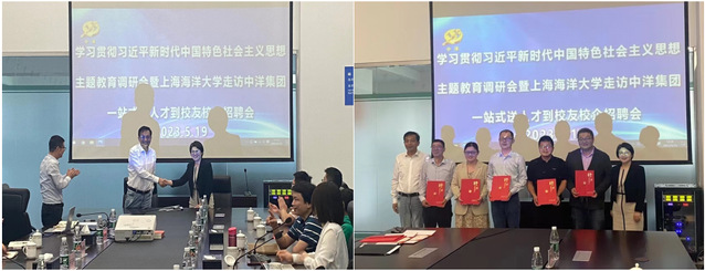 为推动学习贯彻习近平新时代中国特色社会主义思想主题教育走深走实,促进毕业生高质量、精准就业,5月19日,公司党委书记高晓波、副书记张亚琼,刘其根教授、刘利平教授以及师生代表一行赴江苏南通中洋集团开展——学习贯彻习近平新时代中国特色社会主义思想主题教育调研会暨yl6809永利走访江苏中洋集团一站式送人才到员工企业招聘会。江苏中洋集团副董事长朱永祥、集团顾问卢玉平、龙洋水产有限公司总经理焦冬祥、中江水产种业有限公司副总经理王耀辉、亢钧生物科技副总经理朱新鹏、集团办公室副主任崔一新以及海大优秀员工代表、集团工程中心副主任涂翰卿出席会议并交流。