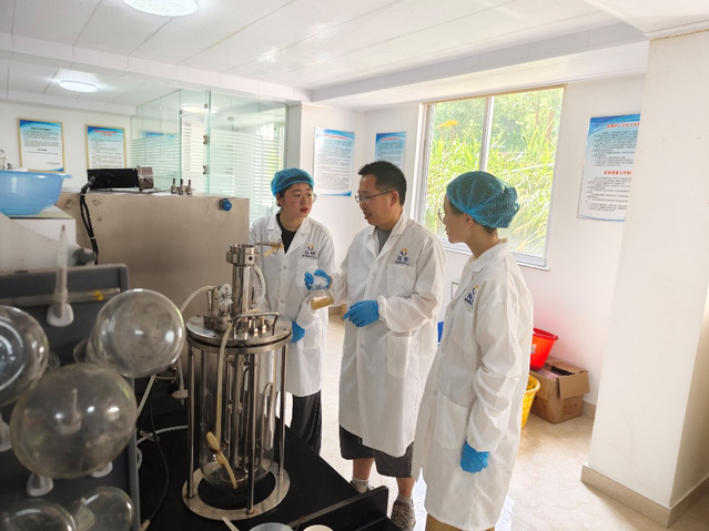科技小院师生讨论弧菌免疫增强剂发酵生产情况