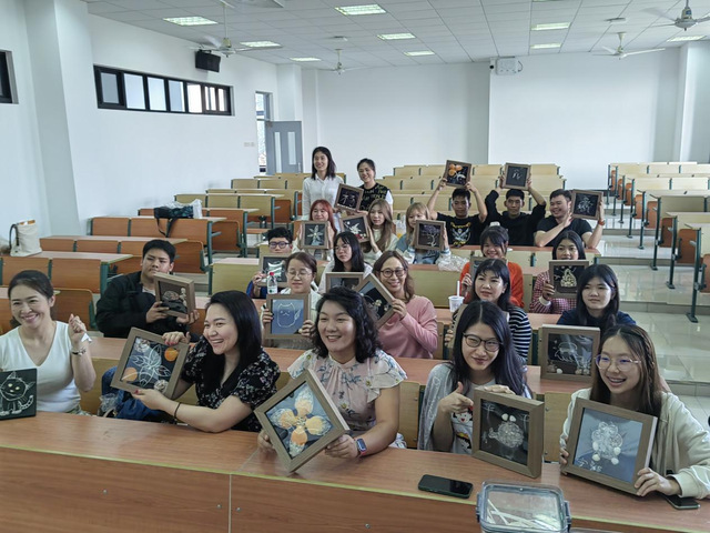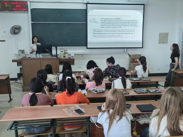 为了给国际员工们一个圆满的文化体验,授课特意选用了中英文双语课件,给国际员工们简述了鱼骨画的发展历史和艺术风格,向国际员工们传授鱼骨画的制作方法,展示了公司员工制作的精美鱼骨画。