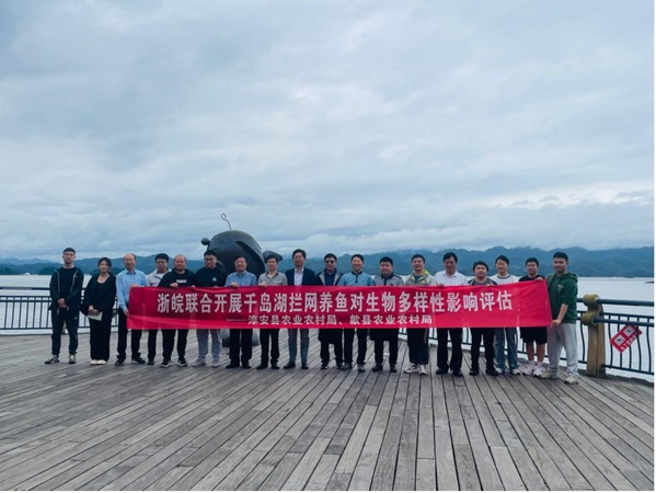 图2 2023年5月5日浙皖联合开展千岛湖拦网养鱼队生物多样性影响评估项目启动合影