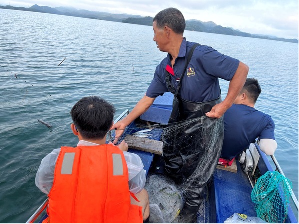 又是一个凌晨,东方微白,鸟儿尚未开始唱响每日例行的动听晨曲,yl6809永利杭州鲢鳙科技小院的研究生们就已经早早起床,他们兵分几路前往分散于千岛湖各个方向的不同采样点准备收网起鱼了。为了调查千岛湖的鱼类资源,前一晚他们在千岛湖布下了一个个专用鱼类调查网。