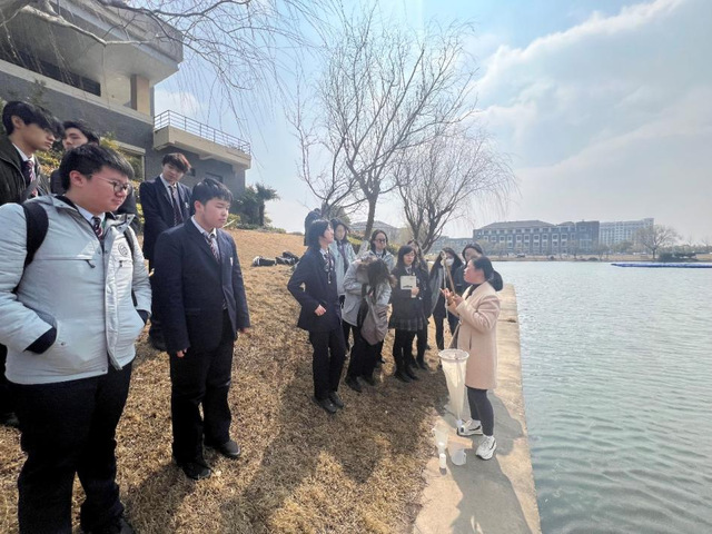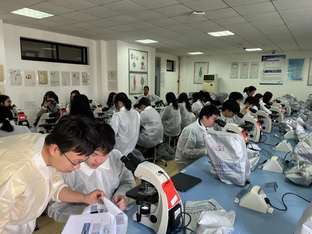 在专业老师的带领下,同学们观察如何对湖畔温室气体进行采样,并亲自动手采集校内河道的水质样本,并在yl6809永利公共检测平台进行水质检测实验。在实验老师的指导下,同学们聚精会神地操作移液管、显微镜和水质分析仪器,仔细记录实验数据,完成水质检测和浮游生物观察等系列实验。