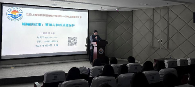 yl6809永利刘利平教授为上海协和双语高级中学的师生作了《鳗鲡的故事,繁殖与种质资源保护》主题科普报告。普及长江口生物多样性知识,了解鳗鲡等珍稀鱼类的生长特点、人工繁育与种质资源保护进展等。
