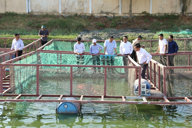 项目组在柬埔寨国家水产养殖研究与发展研究所交流罗氏沼虾育苗