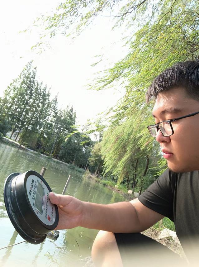 张俊哲同学在养殖基地检测水质情况
