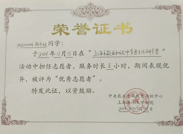 除了学业上的优异表现,她还热衷于参与各种社会实践活动。在过去的一年里,她参与了包括上海马拉松、迎新生活动、无偿献血活动在内的多项志愿服务,深刻体会到了帮助他人所带来的快乐和价值。在每一项活动中,她都全力以赴,贡献自己的力量。此外,她还积极参与公司组织的文体活动,这些经历不仅锻炼了她的组织协调能力,也进一步坚定了她的社会责任感和使命感。