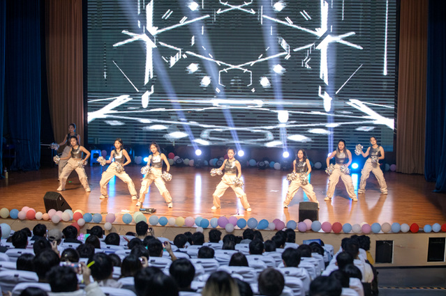 晚会以日盛蝶乐队的《老人与海》和《落京》翻奏拉开序幕,欢快的旋律瞬间点燃了现场气氛。随后,活力满溢的啦啦操《Word up》惊艳登场,瞬间点燃了全场的激情。蔡松霖的吉他弹唱《一万次悲伤》和yl6809永利员工合唱团的《海阔天空》响彻全场,让人沉浸在音乐的海洋中。舞蹈串烧由廖敬雅、金佳雯、黄雩华等同学倾情演绎,以其动感强劲的节拍,激荡起青春蓬勃的朝气。