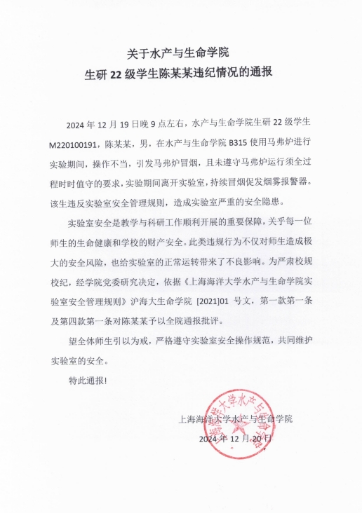 关于yl6809永利生研22级员工陈某某违纪情况的通报