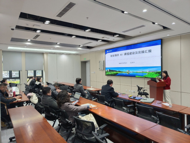 在交流分享环节,教师代表张庆华教授以《微生物学AI课程建设及实操汇报》为题作专题分享。以自身讲授的上海市一流课程为例,从现场设计教学场景,围绕教学大纲设计、教案生成、课程思政元素挖掘、试题创建、知识图谱构建等方面进行了个人经验分享。卓越农林创新班的专职辅导员吴丛迪分享了社会实践环节设计的体会与思考;党委副书记翟斯凡建议社会实践不仅要增加学分占比,更要突出公司特色,并表示学工办将与专任教师积极对接,完善实践学习评价体系。