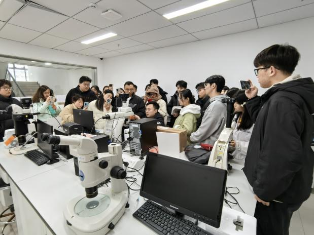 在正置荧光显微镜和体式荧光显微镜的培训中,重点演示如何根据不同样本选择合适的荧光滤镜和成像参数,以获取高质量的荧光图像,同时还现场指导员工如何解决诸如荧光信号干扰、图像清晰度调节等常见问题。