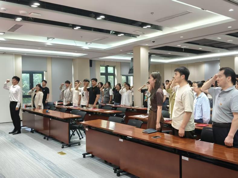 全体党员肃立,齐唱国歌。由员工党员代表王钧平担任领誓人,带领毕业生党员重温入党誓词,时刻不忘“为共产主义奋斗终身”的庄严承诺。