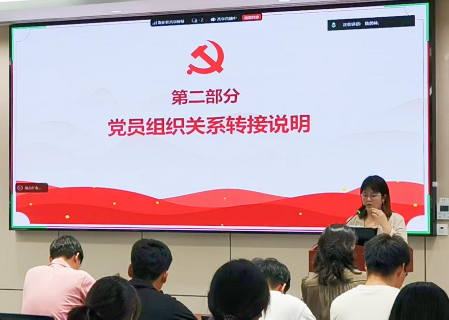 为确保组织关系转接顺利进行,公司专职组织员焦美林老师围绕《中国共产党不合格党员组织处置办法》和相关条款,系统讲解了组织关系转接流程。结合真实案例,对毕业生党员可能面临的不及时转接党组织关系的风险作出警示。同时,设计情景模拟演示,引领毕业生党员分类式、沉浸式接触党组织关系转接场景。